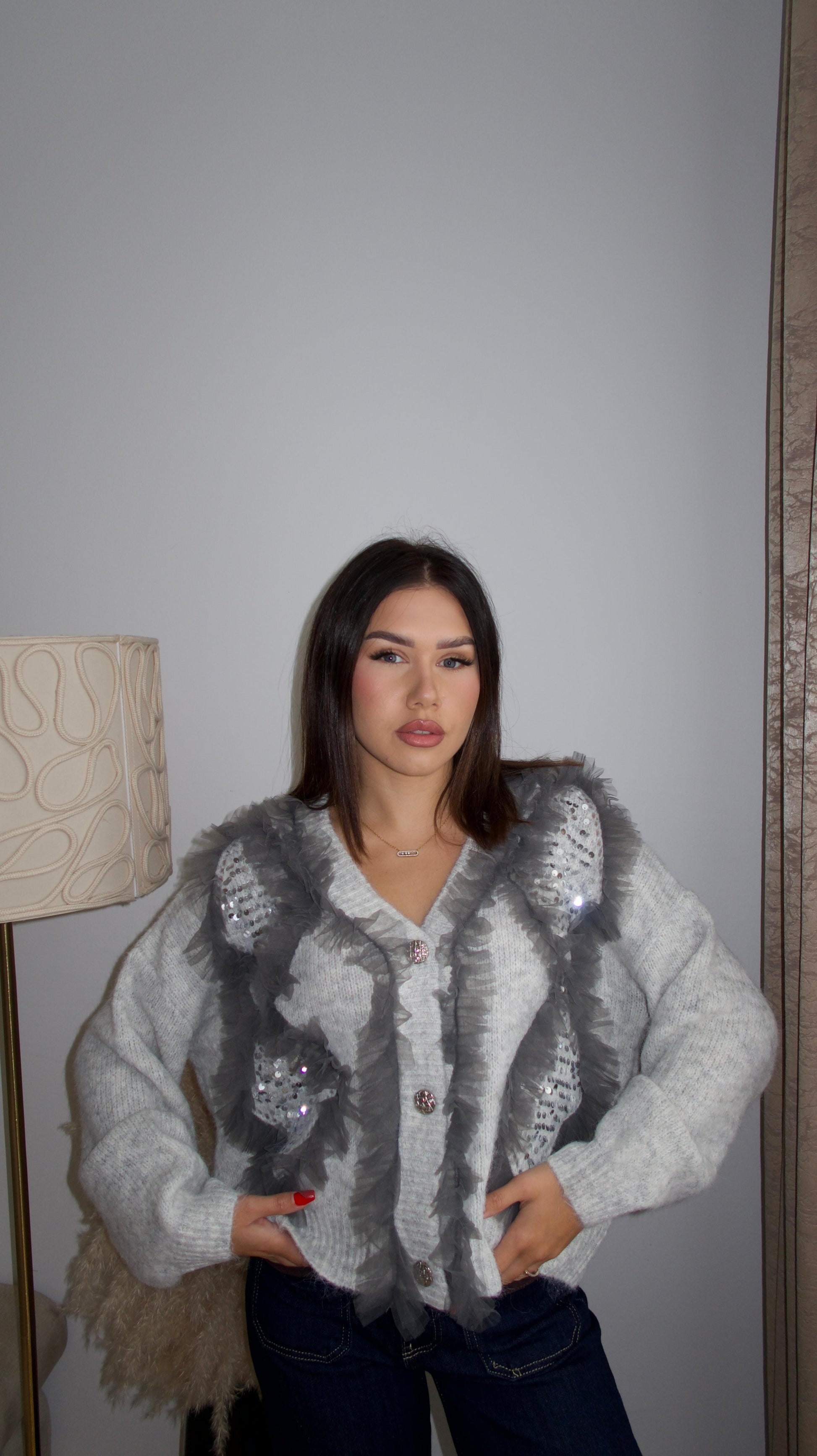 Cardigan with ruffles and glitter S/M/L/XL